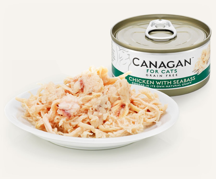 Tender shredded Chicken with Seabass, simply cooked in its own natural gravy. Canagan is a highly nutritious complete food for cats that can also be used to accompany dry food. We use chicken breast meat without the skin for all our wet chicken foods.